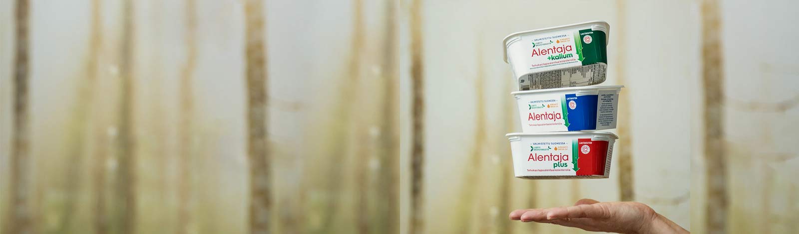 Vuoden 2020 alusta Alentaja -tuoteperhe ottikin ison askeleen entistä vastuullisempaan suuntaan siirtymällä muovipäällysteisistä rasioista kartonkipäällysteiseen leviterasiaan. Pakkausuudistuksen myötä uudet ekologisemmat kartonkirasiat sisältävät yli 50% vähemmän muovia kuin aikaisemmat 400g rasiat. Vuositasolla tämä tarkoittaa noin 25 tonnin vähennystä muovin määrässä!